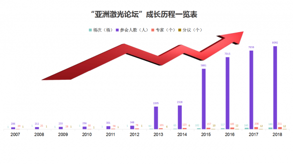 這些年,“亞(ya) 洲激光論壇”的成長真實反映了我國激光產(chan) 業(ye) 發展的曆史進程。每一屆成功的舉(ju) 辦都得到政府部門、社會(hui) 團體(ti) 、高校院所、企業(ye) 高層及激光人的大力支持,如今“亞(ya) 洲激光論壇”已成為(wei) 行業(ye) 規模較大、人數較多、範圍較廣、影響力較深的行業(ye) 盛會(hui) ,成為(wei) 激光行業(ye) 發展的“強力推手”。