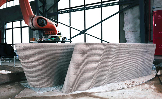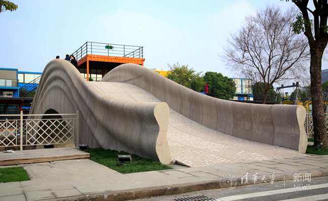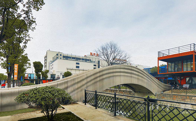 1月12日,清華大學(建築學院)-中南置地數字建築研究中心徐衛國教授團隊運用自主研發的機器臂3D打印混凝土技術,在上海寶山智慧灣建成目前規模最大的混凝土3D打印步行橋。