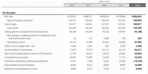 從(cong) 以下圖表可以看到,AMADA從(cong) 2014至2016年連續穩步增長,然而在2017年業(ye) 績下滑,到2018年才重新恢複到前年的業(ye) 績水平。