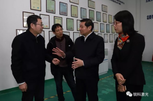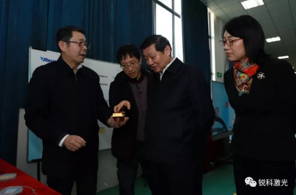 1月22日,上任後的第一天,武漢市委常委、武漢東(dong) 湖高新區黨(dang) 工委書(shu) 記汪祥旺一行到銳科激光(股票代碼:300747)進行調研,了解企業(ye) 產(chan) 品生產(chan) 研發情況,聽取企業(ye) 發展建議和協調解決(jue) 相關(guan) 問題。中國航天三江集團有限公司副總經理、銳科激光董事長伍曉峰和銳科激光副董事長兼總工程師閆大鵬博士陪同考察。
