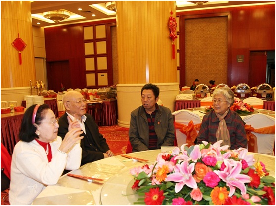 圖23、老友相逢在團拜會(hui) 上。左起:軍(jun) 事醫科院羅振坤研究員、原科技部高新司老處長孫忠發、學會(hui) 專(zhuan) 家委滿春陽、學會(hui) 秘書(shu) 長劉寶勝。