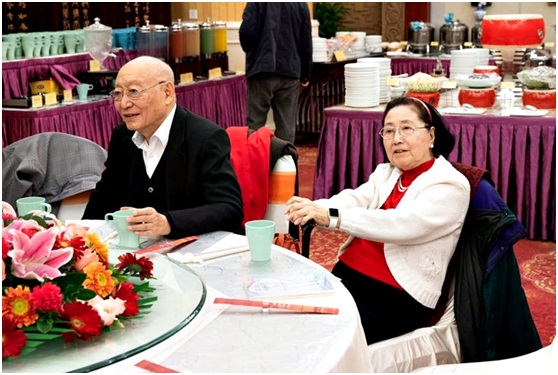 圖3、金國藩院士(左)夫人段淑貞教授(右)在團拜上。