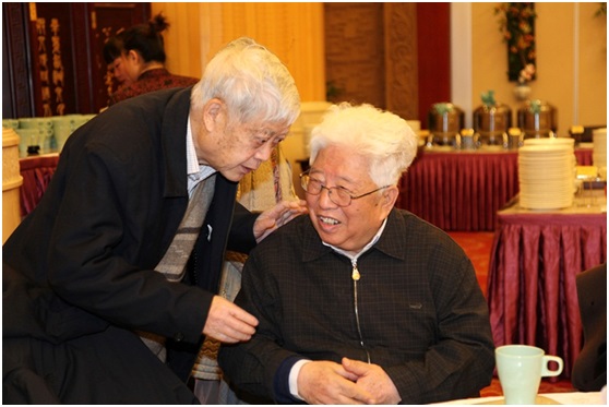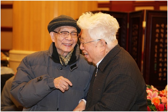 圖13、王啟明院士(左)和簡水生院士(右)在團拜會(hui) 上親(qin) 切見麵。