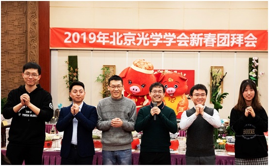 團拜會(hui) 上,北京市科技社團服務中心主任張洪博,中國光學光電子行業(ye) 協會(hui) 副秘書(shu) 長所洪濤、原學會(hui) 北工大研究生分會(hui) 主席、學會(hui) 青年工作委員會(hui) 委員楊作運、雷名威先後講話,向到會(hui) 的全體(ti) 院士、專(zhuan) 家表示誠摯的新春祝福。團拜會(hui) 的最後,學會(hui) 青年工作委員會(hui) 代表及高校研究生分會(hui) 代表:中電十一所張川、航天五院雷名威、清華大學物理係教師劉永椿、北京康冠世紀光電科技有限公司楊作運,北京理工大學分會(hui) 餘(yu) 興(xing) 堯、方慧,代表首都光學界青年一代向出席團拜會(hui) 的老前輩、各位專(zhuan) 家、全體(ti) 來賓拜年!