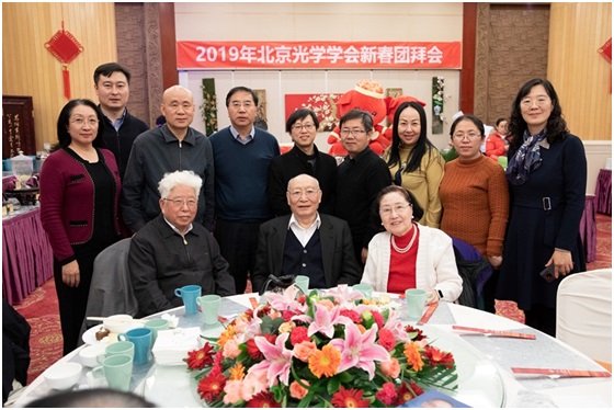 1月26日北京光學學會(hui) 在中國科技會(hui) 堂一層宴會(hui) 廳舉(ju) 辦2019年新春團拜會(hui) 。在京的光學界老前輩、北京光學學會(hui) 名譽理事長金國藩院士和夫人、周立偉(wei) 院士,趙伊君院士和夫人,簡水生院士和夫人,學會(hui) 理事長許祖彥院士和夫人、學會(hui) 副理事長李天初院士和夫人,王啟明院士、姚駿恩院士、周壽桓院士,北京市科技社團服務中心主任張鴻博,市科協社會(hui) 組織黨(dang) 總支副書(shu) 記段巍,原國家科技部高新技術與(yu) 產(chan) 業(ye) 化司孫中發處長,北京模具行業(ye) 協會(hui) 常務副理事長蔣學文,中展集團華港展覽服務公司副總經理苗立剛,北京機械工程學會(hui) 常務副秘書(shu) 長李海濤,北京光學學會(hui) 常務副理事長梁誌遠、專(zhuan) 家委員會(hui) 副主任盛林、張育川,監事長劉永楨,監事劉築聞、張平雷,秘書(shu) 長劉寶勝、副秘書(shu) 長高偉(wei) 男,北京光學學會(hui) 青年工作委員會(hui) 主任林學春、副主任劉運全、楊登才,以及首都光學光電子學界、激光醫學界專(zhuan) 家,和北京光學學會(hui) 高校研究生分會(hui) 的代表等近130人出席了團拜會(hui) 。北京光學學會(hui) 副理事長顧瑛院士由於(yu) 現在海南三亞(ya) 無法出席,特委托秘書(shu) 處工作人員向出席團拜會(hui) 的全體(ti) 同仁表示誠摯的新春祝福!