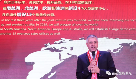 慶典致辭,集團總裁Alex Waser激情地對百超迪能不但取得過往年年高增長,而且2018年逆勢迸發、再創新高予以高度讚美和熱烈祝賀!並對2019年百超迪能激光再次綻放全球、續創佳績予以了明確的全球戰略部署。