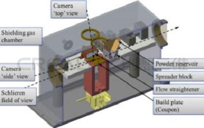 開放式架構PBF係統的示意圖,其中包括對高速成像和紋影成像的修改。科學家們(men) 使用開放式結構PBF係統進行現場測量,提供完全密集組件的自動構建。電腦提供了構建板在層之間的垂直移動、矽繩粉末塗布機的運動、激光照射和掃描和靈活性可用於(yu) 激光功率和速度。