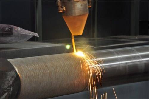 對已經報廢的立柱表麵進行車削,將蝕坑缺陷去除。激光熔覆亦稱激光包覆或激光熔敷,是一種新的表麵改性技術。它通過在基材表麵添加熔覆材料,並利用高能密度的激光束使之與基材表麵薄層一起熔凝的方法,在基層表麵形成與其為冶金結合的添料熔覆層。