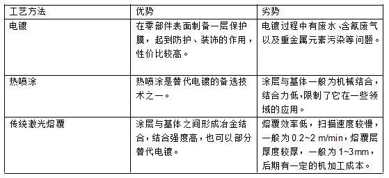 o完全冶金結合,結合力遠優(you) 於(yu) 噴塗、電鍍等傳(chuan) 統工藝,高速激光熔覆是綠色替代鍍鉻等鍍層的優(you) 選工藝;