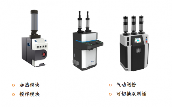 煜宸激光自主研發的負壓式送粉器可實現激光加工的同步送粉,多粉桶設計可實現單桶送粉、多桶聯合送粉,可根據客戶需求定製,能滿足客戶的不同需求。