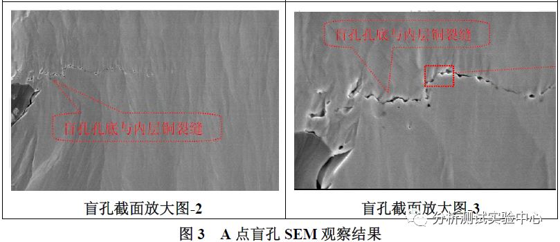 通過微切片法對A點位置進行分析,經離子研磨拋光處理後,使用掃描電鏡SEM對其金相觀察,分析結果如下圖3所示: