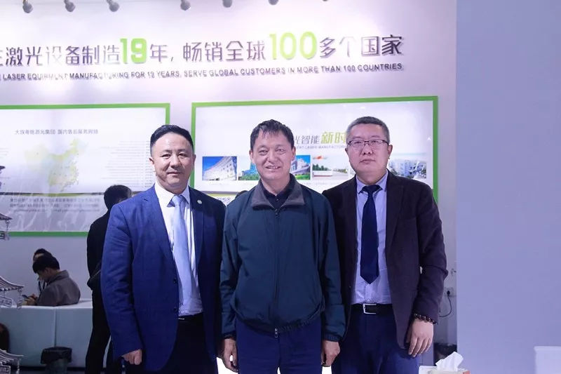 展會(hui) 期間,大族激光集團董事長兼總經理高雲(yun) 峰先生、大族激光集團副董事長兼常務副總經理張建群先生等集團公司領導親(qin) 臨(lin) 大族粵銘激光集團展位現場指導工作。大族粵銘集團執行董事兼總經理卓勁鬆先生向高雲(yun) 峰董事長和張建群副董事長匯報了展會(hui) 現場的各項工作,並詳細介紹了每一款參展設備,高雲(yun) 峰董事長和張建群副董事長對大族粵銘在本次展會(hui) 上亮相的激光智能裝備給予了充分的認可和肯定。