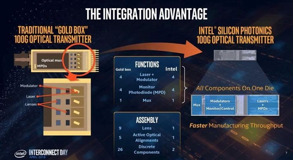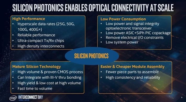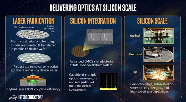 Intel表示,之所以使用激光傳輸數據,是因為光子的速度要比電子更快,而且光子彼此更加靠近,可以大大提升傳輸密度。