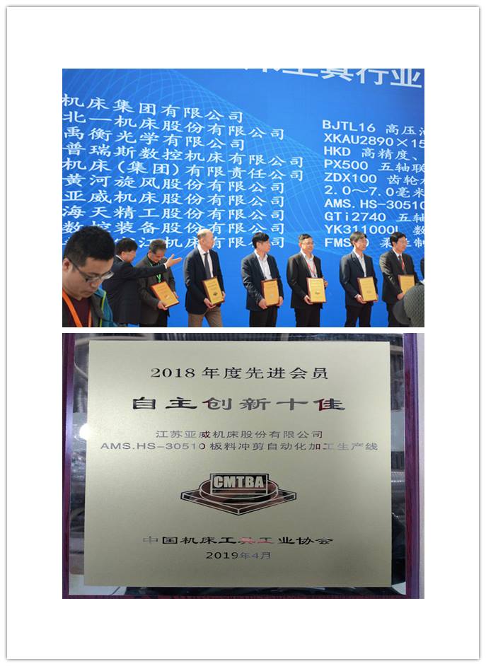 亞(ya) 威股份憑借自主研發製造的AMS.HS-30510板料衝(chong) 剪自動化加工生產(chan) 線榮獲2018年度機床工具行業(ye) “自主創新十佳”榮譽稱號。亞(ya) 威始終堅持技術領先戰略,持續提升自主創新能力。2018年投入研發費用過億(yi) 元,在行業(ye) 內(nei) 處於(yu) 領先水平;設有國家級博士後科研工作站,建有省級技術中心、省級重點企業(ye) 實驗室,在意大利、南京等地建立了國際國內(nei) 研發分中心,匯集了一大批行業(ye) 一流技術人才,確保了企業(ye) 在行業(ye) 內(nei) 長期的技術領先優(you) 勢。近年來亞(ya) 威共承擔9項省級以上重大科研攻關(guan) 項目,4個(ge) 新產(chan) 品被認定為(wei) 江蘇省首台套重大裝備,獲省級以上科技進步獎6項,獲各類專(zhuan) 利190項,其中發明專(zhuan) 利26項,主持或參與(yu) 起草並發布的國家、行業(ye) 標準4項。