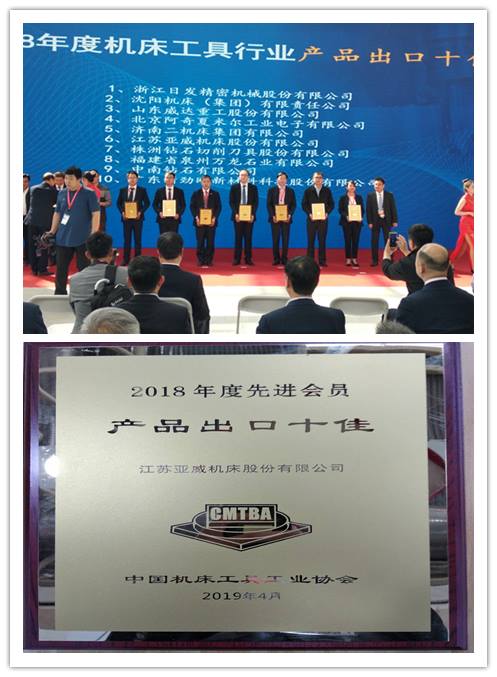 2019年4月15日,第十六屆中國國際機床展覽會(hui) 在北京盛大開幕。下午14:00,主辦方中國機床工具工業(ye) 協會(hui) 在展會(hui) 現場隆重舉(ju) 行了2018年度四項“行業(ye) 十佳”會(hui) 員企業(ye) 頒獎儀(yi) 式。其中,江蘇亞(ya) 威機床股份有限公司榮獲2018年度機床工具行業(ye) “自主創新十佳”、“產(chan) 品出口十佳”兩(liang) 大榮譽。