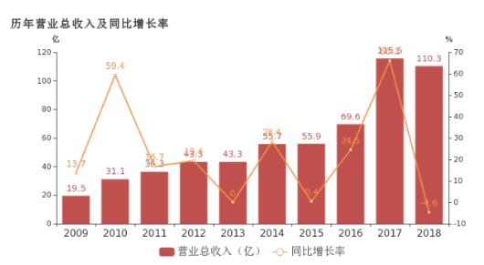 大族激光於(yu) 2019年4月23日披露年報,公司2018年實現營業(ye) 總收入110.3億(yi) ,同比下降4.6%;實現歸屬於(yu) 母公司所有者的淨利潤17.2億(yi) ,同