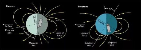 除了天王星和海王星外,太陽係中其他行星的磁場結構簡單、擁有明確的南極和北極。這就好像它們的中心隻有條形磁鐵,與旋轉軸平行。行星科學家把這歸因於“發電機”:當行星旋轉時,內部導電液體產生對流,形成巨大的磁場。