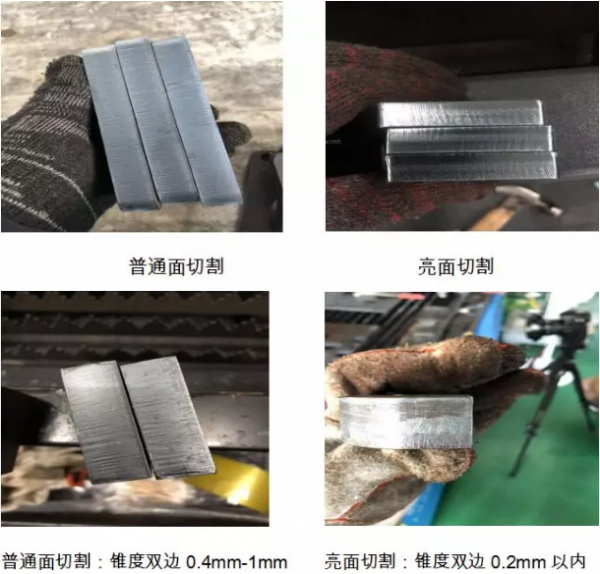 inkMacSystemFont, "font-size:16px;text-align:justify;background-color:#FFFFFF;text-indent:28px;"> 高功率高速亮麵切割技術(HHB,High power,High speed,Bright surface),即在功率足夠的情況下,利用小噴嘴、小氣壓,配合高功率激光高速切割不同厚度的碳鋼板材,以此獲得光滑的切割斷麵和更小的加工錐度。光滑的切麵方便客戶後續加工;同時錐度基本能夠控製在雙邊0.2mm以下,在某些高精度要求的加工行業(ye) ,更好的滿足客戶要求。