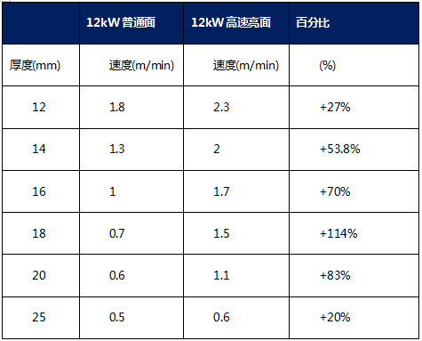 高功率:功率越高,能夠切割的碳鋼亮麵極限厚度越大,效率也會(hui) 明顯提升;