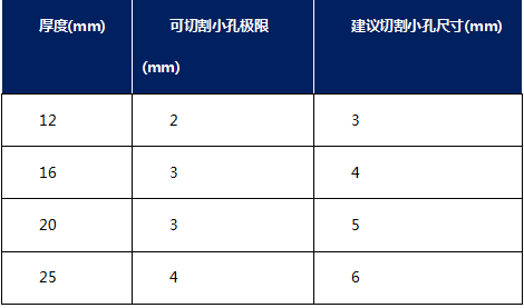 在高速亮麵切割技術的引申下,我們(men) 開發了厚板的小孔切割技術,能夠在較厚的板材上,切割出直徑遠小於(yu) 板厚的高質量小孔,例如,在20mm的碳鋼板上,切割出直徑為(wei) 3-5mm的小孔並能夠穩定加工。