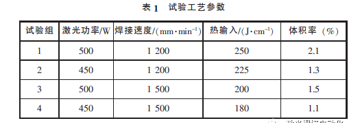 inkMacSystemFont, 'Helvetica Neue', 'PingFang SC', 'Hiragino Sans GB', 'Microsoft YaHei UI', 'Microsoft YaHei', Arial, sans-serif;color:#333333;font-size:16px;font-weight:normal;" align="center"> 好的焊縫, 本文僅(jin) 改變激光功率和焊接速度研究工藝參數對氣孔的影響, 具體(ti) 試驗參數見表1。