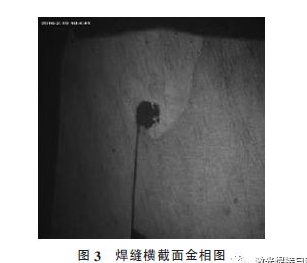 inkMacSystemFont, 'Helvetica Neue', 'PingFang SC', 'Hiragino Sans GB', 'Microsoft YaHei UI', 'Microsoft YaHei', Arial, sans-serif;color:#333333;font-size:16px;font-weight:normal;" align="center"> 利用激光功率密度公式Φ=P/(π×r2), 式中Φ 為(wei) 功率密度(W/cm2), P 為(wei) 激光功率(W), r 為(wei) 光斑半徑(cm), 通過計算可知, 試驗中激光功率密度約為(wei) 1.43×106~1.59×106 W/cm2 , 小於(yu) 鋁合金激光深熔焊功率密度的閾值。焊接接頭的顯微組織如圖3 所示。從(cong) 圖3 中可以看到明顯的熔合線, 焊縫橫截麵呈V形, 焊縫熔深為(wei) 0.8~1 mm 之間, 熔寬接近1 mm,深寬比不超過1, 是典型的激光傳(chuan) 導焊焊縫。