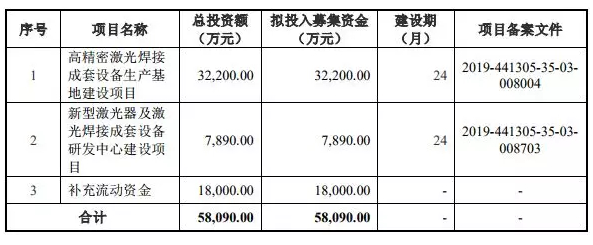 inkMacSystemFont, "font-size:17px;text-align:justify;text-indent:0px;background-color:#FFFFFF;"> 聯贏激光的保薦機構為(wei) 中山證券,擬公開發行新股數量為(wei) 7,480.00萬(wan) 股(不含采用超額配售選擇權發行的股票數量),占發行後總股本25.00%。本次發行募集5.81億(yi) 元資金扣除發行費用後投資於(yu) 高精密激光焊接成套設備生產(chan) 基地建設項目、新型激光器及激光焊接成套設備研發中心建設項目,同時補充流動資金。