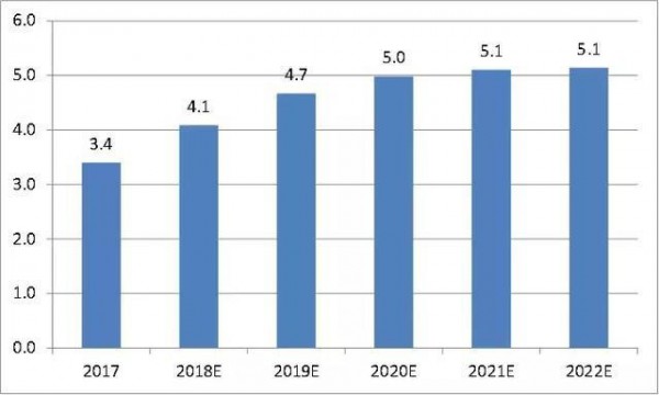 當前柏楚電子主要產(chan) 品應用於(yu) 中低功率激光切割設備(注:激光切割設備根據激光器的功率可以分為(wei) 中低高功率,越高功率的設備就越貴,技術難度也越高),市場規模也會(hui) 隨之增長,但由於(yu) 數控係統存在降價(jia) 趨勢,因此市場增速要低於(yu) 設備的增速,年均約5%。