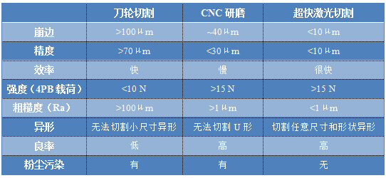 LCD屏幕的結構模式是雙片疊加,雙片玻璃的超薄特性決(jue) 定了它的脆性,切割的時候容易產(chan) 生崩邊,而崩邊則影響玻璃的強度,因此切割方式造成的崩邊量非常重要。