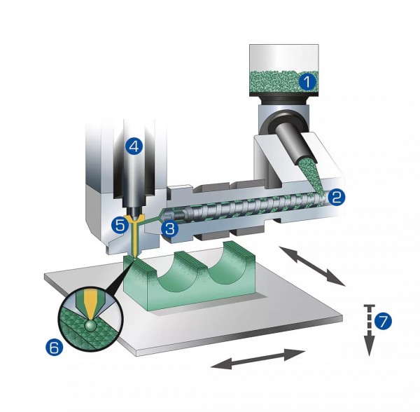 增材製造的核心工藝過程是在卸料單元的噴嘴處生成液滴。壓電陶瓷促動器將電能直接轉化成機械能,並實現具有亞(ya) 納米級分辨率的運動。它們(men) 可實現長達約1毫米的行程以及頻率高達幾千赫茲(zi) 的高動態。Freeformer卸料單元目前的工作頻率為(wei) 60至200赫茲(zi) 之間。