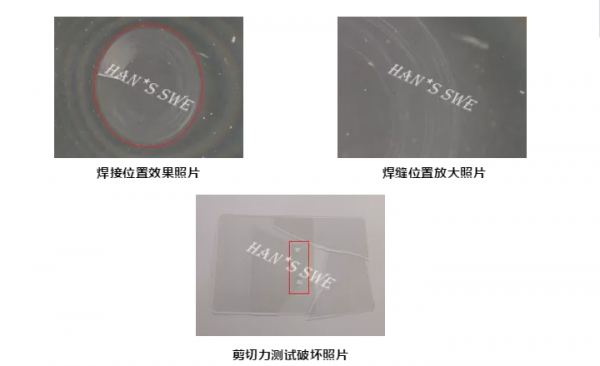 藍寶石激光焊後焊接位置無裂紋,表麵無損傷(shang) ,剪切力測試焊接位置未脫落。