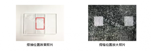 激光焊接玻璃時,高強激光透過上層玻璃,當光強超過一定閾值,在透明介質內(nei) 會(hui) 產(chan) 生非線性吸收,並使材料焦體(ti) 積內(nei) 的電子電離產(chan) 生等離子體(ti) ,材料熔化形成熔池,在接合處填充間隙,凝固後形成有效焊接。焊後玻璃基本呈現透明狀態。