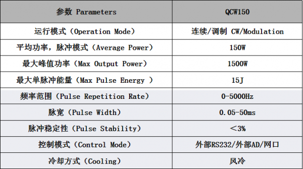 inkMacSystemFont, "font-size:16px;text-indent:0em;background-color:#FFFFFF;"> 銳科150W QCW準連續光纖激光器技術參數