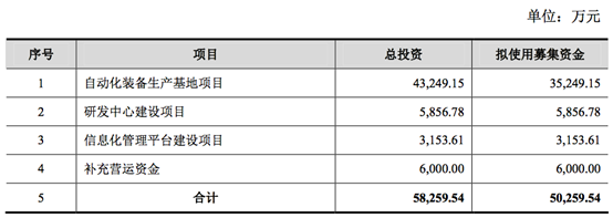 此次,光大激光擬募資5.03億(yi) 元用於(yu) 投建自動化裝備生產(chan) 基地項目、研發中心建設項目、信息化管理平台建設項目、補充營運資金等。如下: