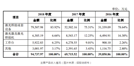 同時,2018年激光焊接成套設備的單價(jia) 為(wei) 126.15萬(wan) 元/套,幾乎為(wei) 2017年價(jia) 格的2倍。招股書(shu) 顯示,這是由於(yu) 公司產(chan) 品為(wei) 定製機型,售出的設備因客戶的不同要求而存在一定的差異。