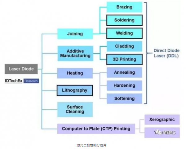 因此,DDL和HPDDL正在成為(wei) 全球工業(ye) 製造的主要趨勢。為(wei) 了提升在高增長的DDL/HPDDL市場中的地位,一些重要的參與(yu) 企業(ye) 正在進行戰略性收購,並投入資金用於(yu) 擴大產(chan) 能。例如,日本鬆下收購了美國激光公司TeraDiode,以獲得後者在HPDDL方麵的專(zhuan) 業(ye) 技術。該技術能通過擁有專(zhuan) 利的光學工藝產(chan) 生高質量的光束。總的來說,上述技術進步帶來了良好的業(ye) 務增長機會(hui) 。IDTechEx預測,到2029年,全球激光二極管和直接二極管激光器的市場規模將達到140億(yi) 美元,其中直接二極管激光器的市場規模將達到20億(yi) 美元。IDTechEx的報告《激光二極管和直接二極管激光器-2019版》對該市場進行了詳細分析。
