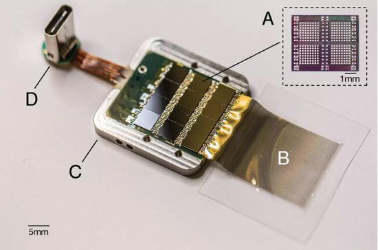 在這條線上是一係列微小電極和傳(chuan) 感器,可從(cong) 大量細胞中捕獲信息並將其無線發送到計算機以供分析。