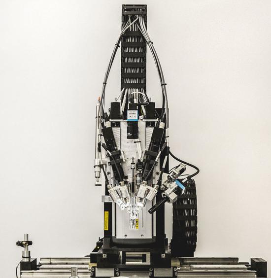 但是,Neuralink 的細線比 Utah Array 更難植入,原因在於(yu) 它非常靈活。為(wei) 了解決(jue) 這一問題,Neuralink 開發了一種「每分鍾自動嵌入 6 根線(192 個(ge) 電極)的神經外科手術機器人」。從(cong) 下圖中我們(men) 可以看到,它很像顯微鏡和縫紉機的混合體(ti) 。它閃避開血管的位置,這會(hui) 減少大腦產(chan) 生炎症反應的情況。