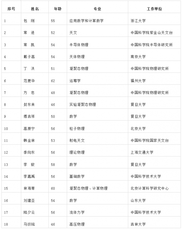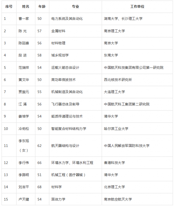 inkMacSystemFont, " font-size:15px;text-align:justify;background-color:#ffffff;"=""> 根據公布的信息顯示,181名初步候選人中,數學物理學部29人、化學部28人、生命科學和醫學學部32人、地學部27人、信息技術科學部26人、技術科學部39人。其中,年齡最大的是來自北京理工大學的劉吉平,68歲;年齡最小的是來自中國科學院數學與(yu) 係統科學研究院的孫斌勇,42歲。