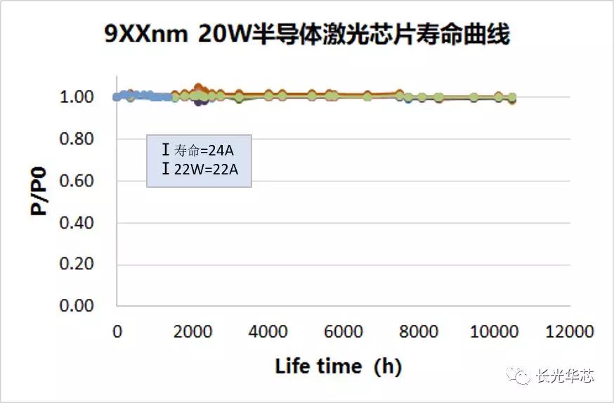 圖6 9XXnm 20W半導體(ti) 激光芯片壽命曲線