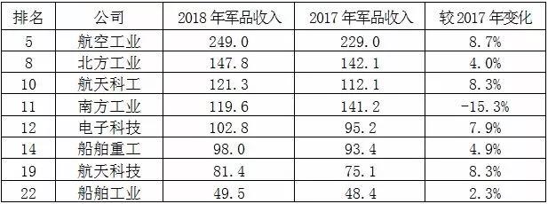中國軍(jun) 工企業(ye) 的2018年軍(jun) 品收入等數據信息主要來自英國國際戰略研究所。該研究所從(cong) 事中國國防工業(ye) 研究多年,其數據主要來自中國政府及軍(jun) 工企業(ye) 的相關(guan) 報告、各金融媒體(ti) 報道等。英國國際戰略研究所在確定中國各軍(jun) 工集團的總收入數據之後,對各集團下屬子公司的業(ye) 務領域進行分類推測研究,若該子公司以軍(jun) 品業(ye) 務為(wei) 主,則認定其為(wei) 軍(jun) 工企業(ye) ,最後基於(yu) 各軍(jun) 工集團中軍(jun) 工企業(ye) 數量占比,估算出各集團軍(jun) 品收入總額。需要說明的是,利用該估算統計方法獲得的數據可能誤差較大,該方法的科學性、合理性有待進一步驗證、調整,但根據中國北方工業(ye) 集團實際公開的2018年軍(jun) 品收入數據,英國國際戰略研究所通過估算得出的統計結果與(yu) 之基本相符。基於(yu) 該方法,2018年中國共有8家企業(ye) 進入軍(jun) 工百強榜,其中有6家進入前15名,7家實現年度軍(jun) 品收入增長,上榜企業(ye) 的軍(jun) 品總收入僅(jin) 次於(yu) 美國。
