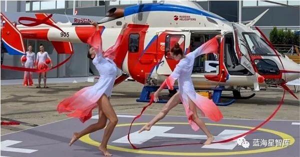 圖3 2019年6月巴黎航展期間,俄羅斯體(ti) 操運動員在俄羅斯直升機公司展台表