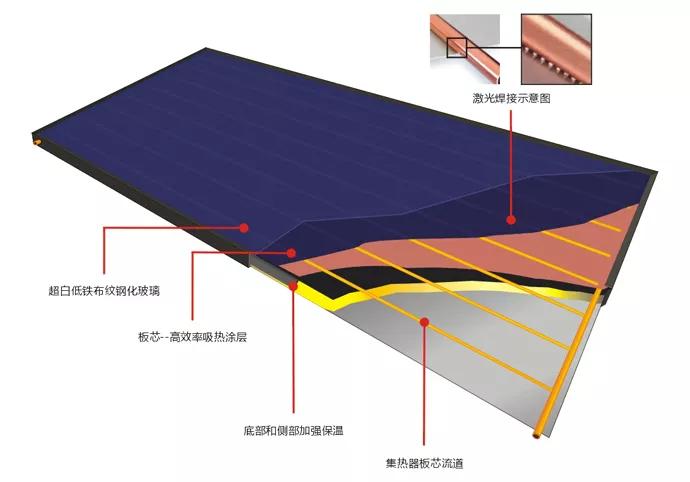 集熱器的作用就是把分散的太陽輻射能聚集起來。常見的集熱器有平板集熱器、聚光集熱器。下麵,以廣泛用於(yu) 太陽能熱水器的平板集熱器為(wei) 例,探討一下焊接工藝對太陽能集熱器熱傳(chuan) 導效率的影響。