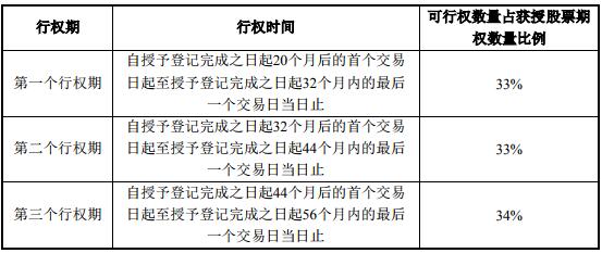 行權期及各期行權時間安排如表所示:
