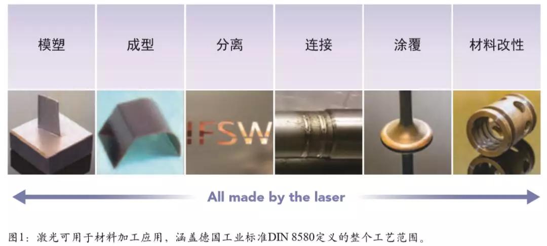 幾十年來,眾(zhong) 所周知,激光是一種非常靈活的材料加工工具,可用於(yu) 滿足各種製造應用,實際上涵蓋了德國工業(ye) 標準DIN 8580 定義(yi) 的所有製造工藝。DIN 8580 將工藝 分為(wei) 模塑、成型、分離、連接,塗覆和改變材料特性(見圖1)。在 1992 年的教科書(shu) 中,Helmut Hügel 就這樣說道 :“激光在工業(ye) 製造中的重要性,在於(yu) 其在各種加工工藝方麵的非凡靈活性,包括切割、燒蝕、鑽孔、焊接、硬化、合金化、重熔,以及眾(zhong) 多材料和不同的工件配置。”