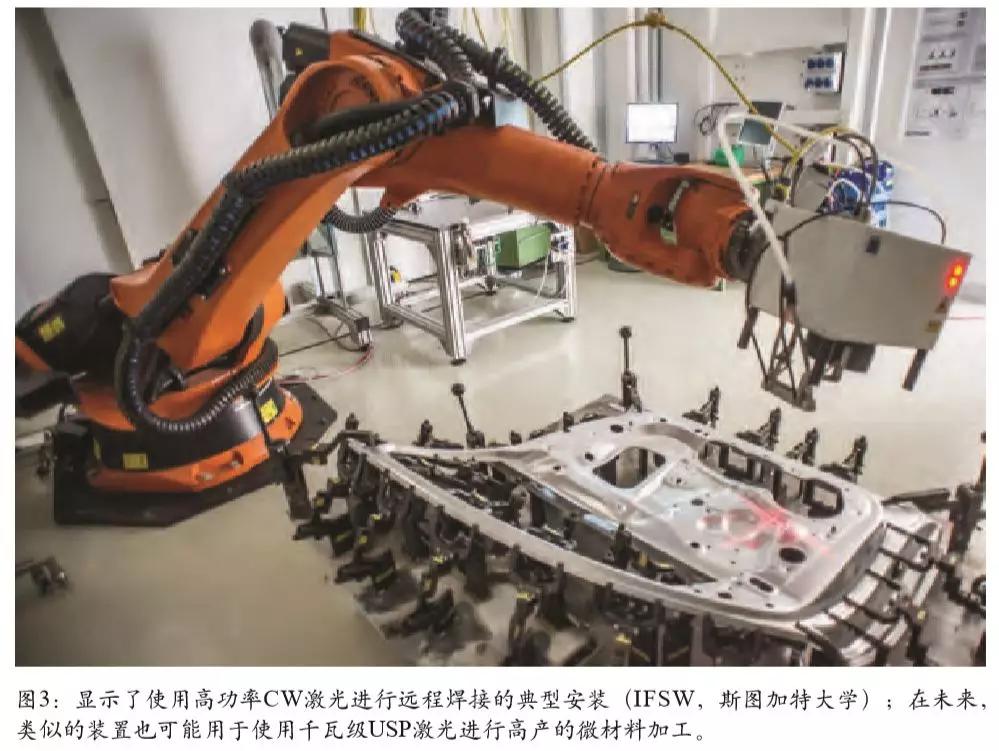 但所有這一切都將改變。由於(yu) USP激光器的平均輸出功率剛剛進入數千瓦級(見圖 2),這種類型激光器 的使用目前正在擴展到傳(chuan) 統的微加工實驗室之外,並且確實征服了大規模的製造應用。因此,我們(men) 將看到更多基於(yu) 激光的高精度超快材料加工在大型生產(chan) 機器上進行,初看起來與(yu) 我們(men) 用於(yu) 切割或焊接等的經典宏觀應用非常相似(見圖3)。因此,在同一台機器上執行所有已知激光材料加工應用的想法很自然。但這可以用同一台激光器實現嗎?