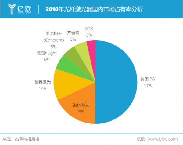 從(cong) 2018年光纖激光器的市場占有率來看,開創了中國商用脈寬可調高功率脈衝(chong) 光纖激光器先河的傑普特,也難逃被巨頭排擠的厄運。數據表明,2018年傑普特的光纖激光器份額僅(jin) 占國內(nei) 市場的5%,以美國IPG為(wei) 主的光纖激光器企業(ye) 占領了國內(nei) 60%的市場份額。