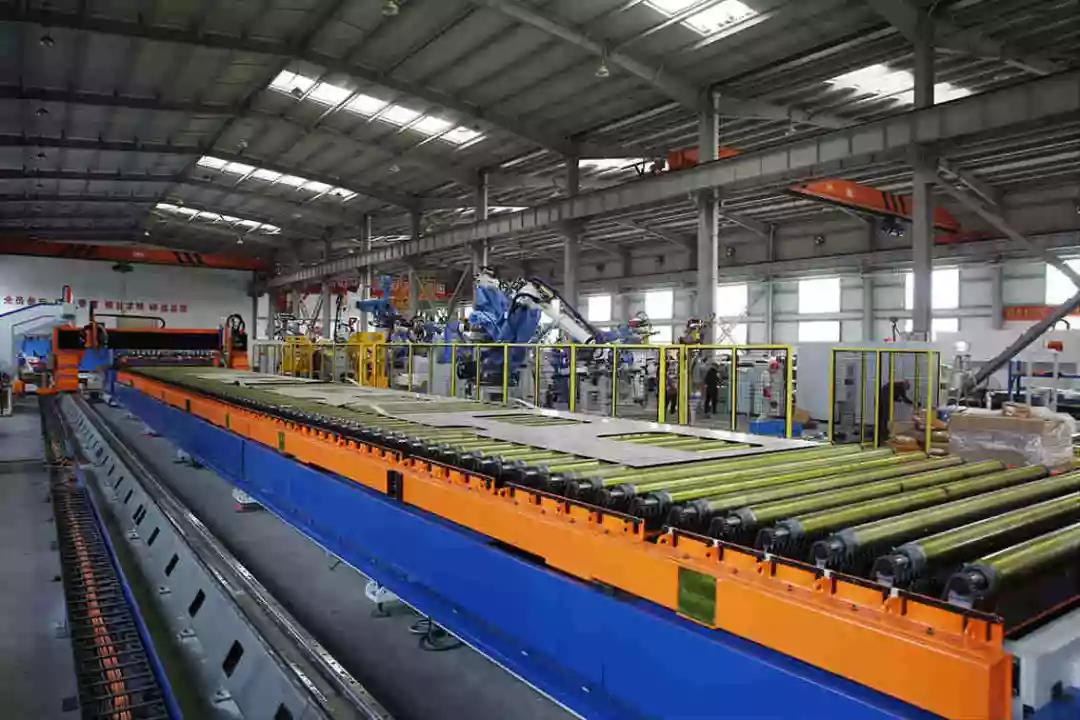 同時,該設備是國內(nei) 首個(ge) 針對印度火車皮連續自動切焊的產(chan) 品,可實現連續自動化生產(chan) ,從(cong) 原材料的上料、定位、裝夾、切割修邊、拚縫焊接、步進、輸送、整體(ti) 切割下料均為(wei) 全自動化完成。