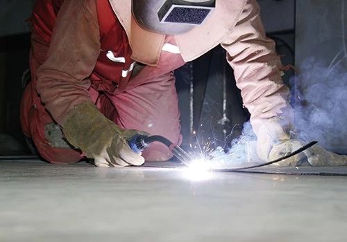 通常在長焊縫和多層焊接的情況下,可以進行部分機械化的焊接程序。當焊接大量相同的零件時,機器人焊接是一種極富吸引力的選擇。弧焊通常用於戶外,MIG和MAG焊接用於生產車間。當焊接塗覆有底漆的板材時,焊接氣體的選擇和焊工的技術決定了焊接的質量。位於水麵上方的組件(例如海上結構)的焊縫必須精確地施工,以便能夠在不進行大量再次加工的情況下對其進行塗漆。