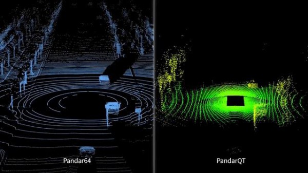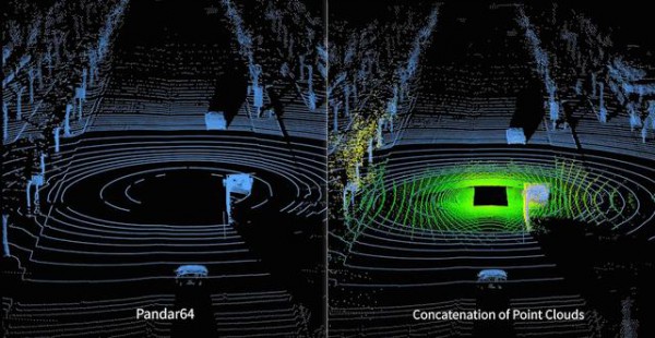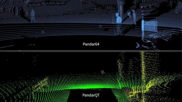 圖為(wei) :Pandar64和PandarQT對近距障礙物識別時的對比。